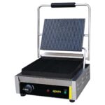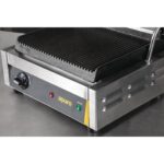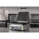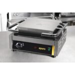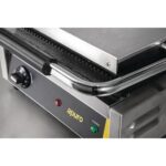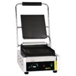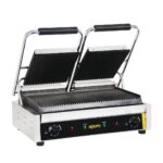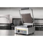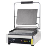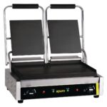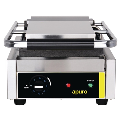 A great value contact grill from Apuro, combining tough stainless steel construction with flat cast iron plates for long-term use.