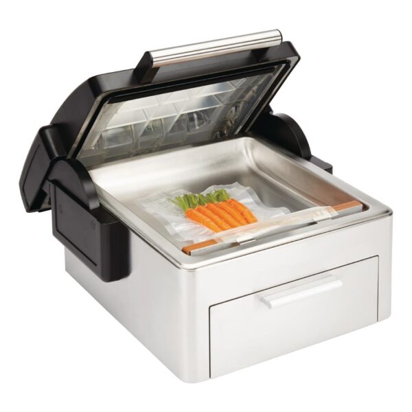 A viewing window allows the food or liquid to be monitored during the vacuum process and the stainless steel construction makes this machine exceptionally hygienic and easy to clean.