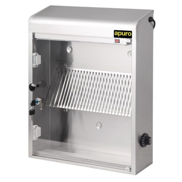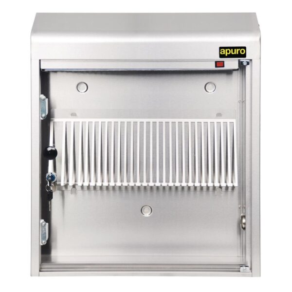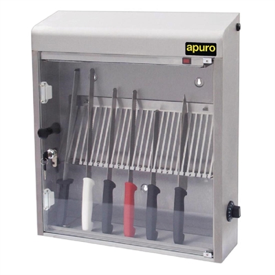 - Apuros stainless steel knife cabinet can hold up to 15 knives, is designed to reduce cross contamination.