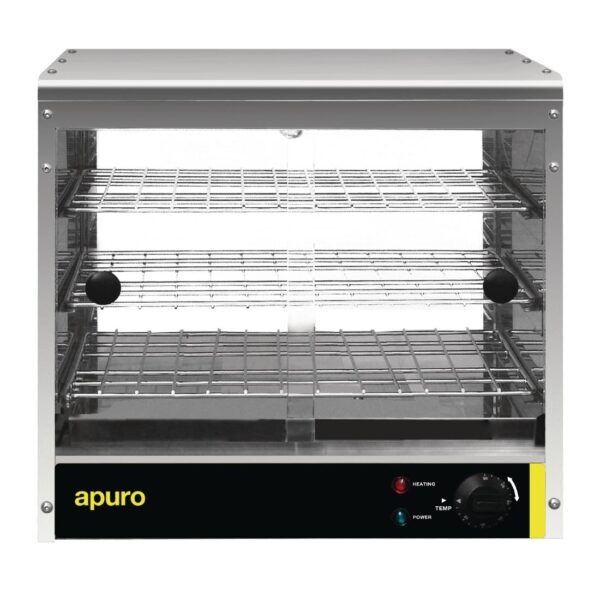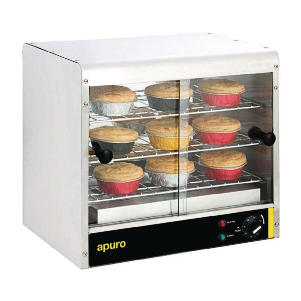 Designed for the attractive presentation and merchandising of pies, pasties, sausage rolls and more, the Apuro Pie Cabinet is a stylish solution for promoting impulse pastry purchasing.