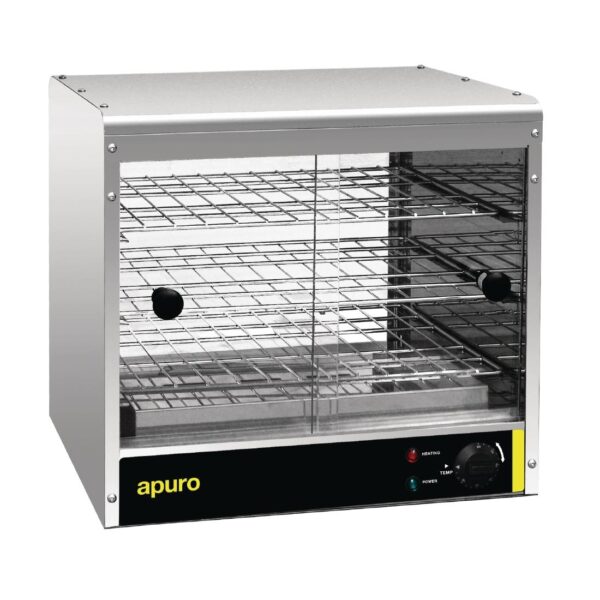Constructed from strong stainless steel and with clear glass sliding doors, the pie cabinet is sturdy, effortless to clean and easy to access.
