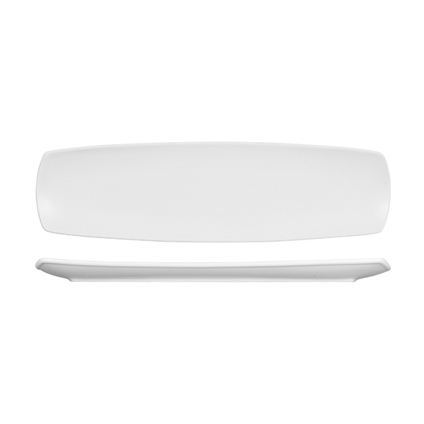 - A beautiful range of three rectangular rimless plates with soft curves.
