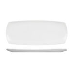 - A beautiful range of three rectangular rimless plates with soft curves.