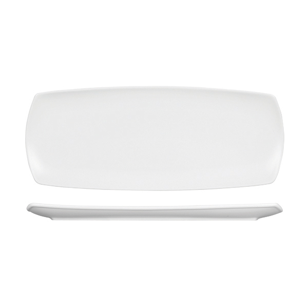- A beautiful range of three rectangular rimless plates with soft curves.
