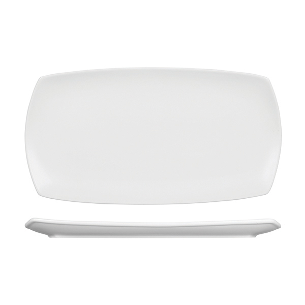 - A beautiful range of three rectangular rimless plates with soft curves.