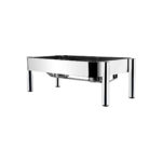Heavy gauge in shiny stainless steel defines it’s quality and durability, it can be used directly on induction or use with the matching stand for electric or chafer fuel.