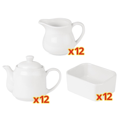 - A great value tea service set including 12 x 430ml Beverage pots (CC204), 12 x 170ml Milk Jugs (U819) and 12 x Sachet Holders (CC205).
