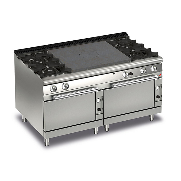 - Gas target top with two gas burners on the left and right and two gas ovens.