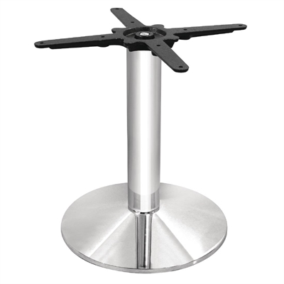 - With an attractive chrome finish, this table base is compatible with our range of predrilled table tops.