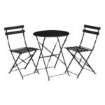 This round contemporary styled bistro table is made from hard wearing steel and finished in black for a stylish touch that is easy to match with any existing decor.