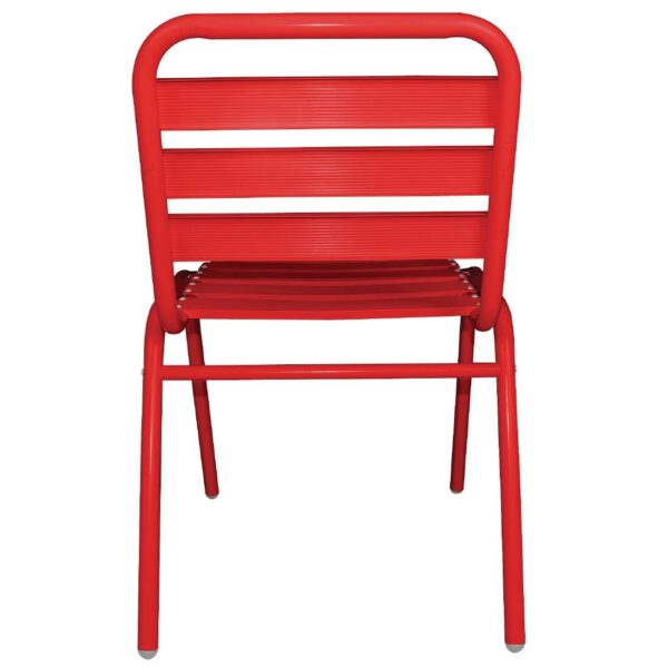 These steel cafe chairs can be stacked up to 5 chairs high, helping you to save space when storing and making cleaning floor space easier.