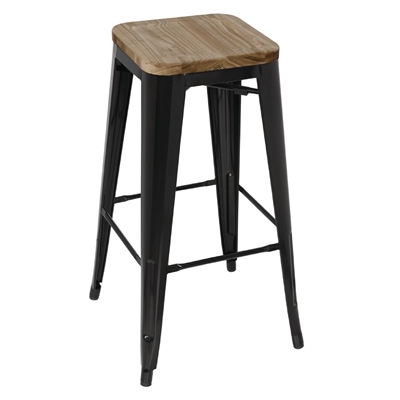 Bolero GM640 High Metal Bar Stools with Wooden Seat Pad Black