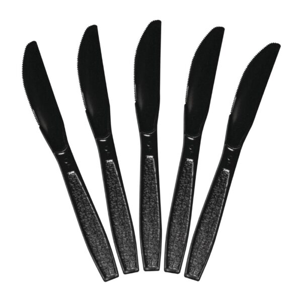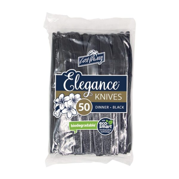 • Get a touch of elegance for your table top settings, with these Castaway Elegance black plastic knives.