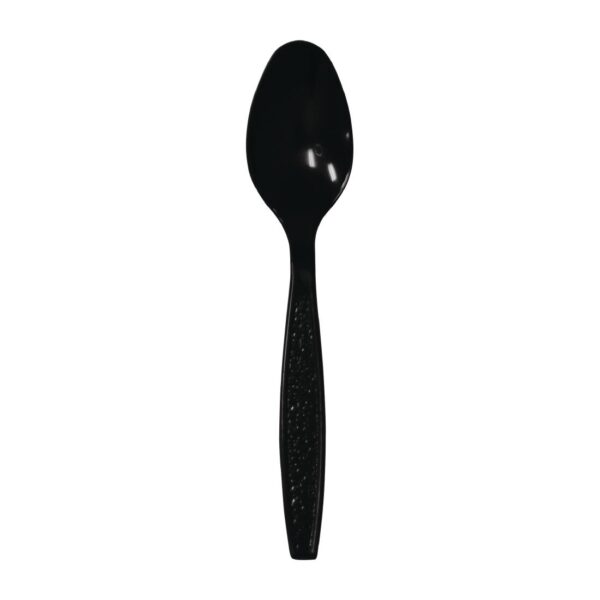 Combine style and strength with these Castaway Elegance black plastic spoons.
