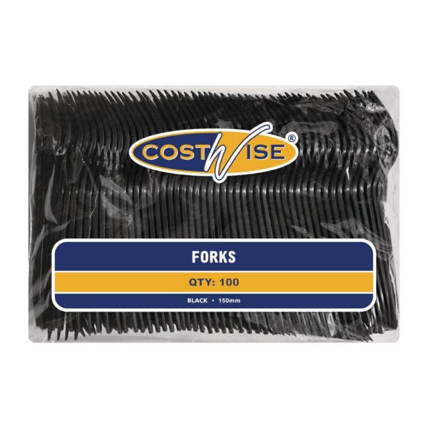 Save money with these durable and stylish disposable black forks from Costwise.
