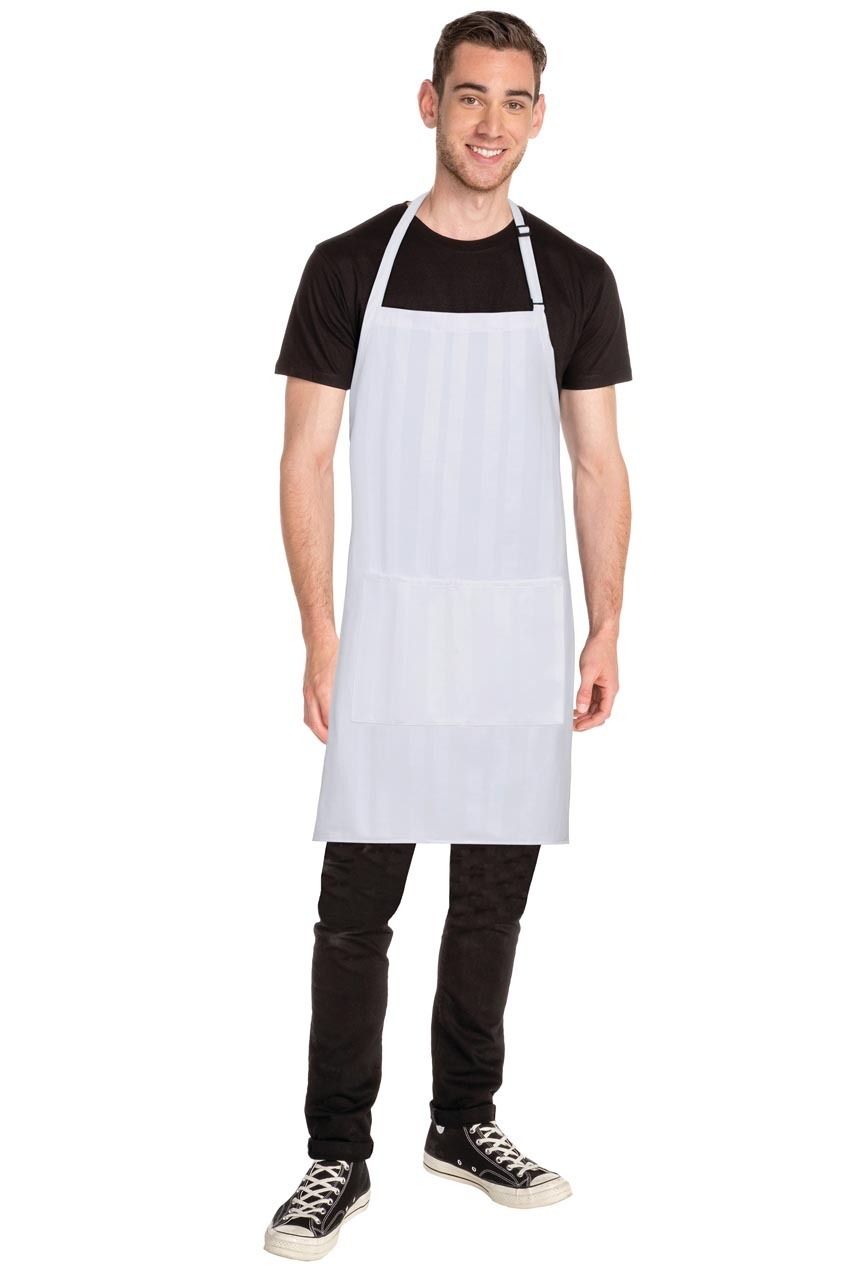 Double front pockets on the Phoenix Bib Apron make a perfect addition to keep you organized while the tone-on-tone stripe pattern gives you a clean, fashion-forward look.
