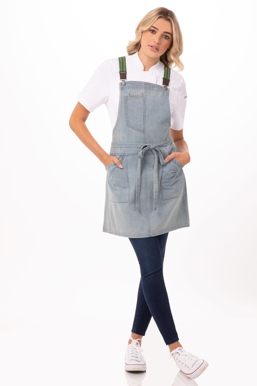 Chef Works ABS01W-SKY-DC Berkeley Petite Bib Apron -DC