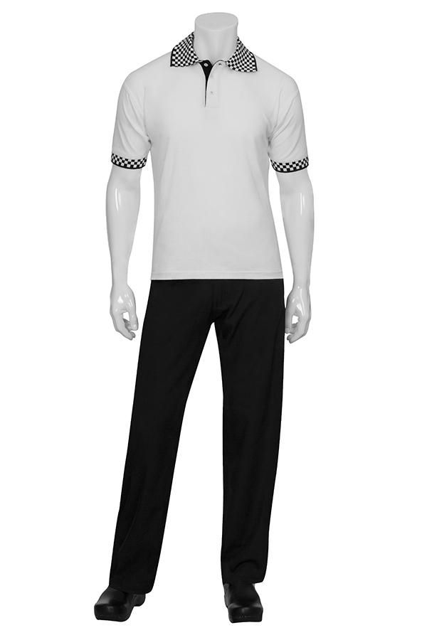 - The White Polo with Checked Cuff and Collar shirt is a great shirt for the front and back house.