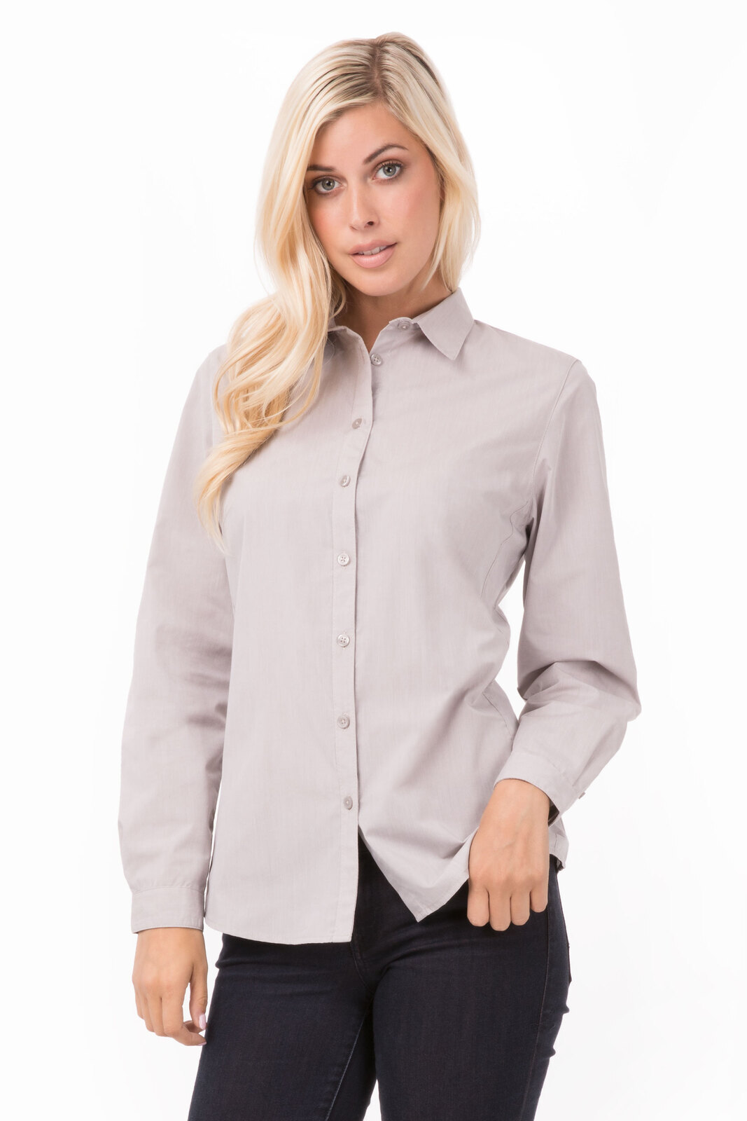 Chef Works SHC06W-LTG-M Modern Chambray Dress Shirt