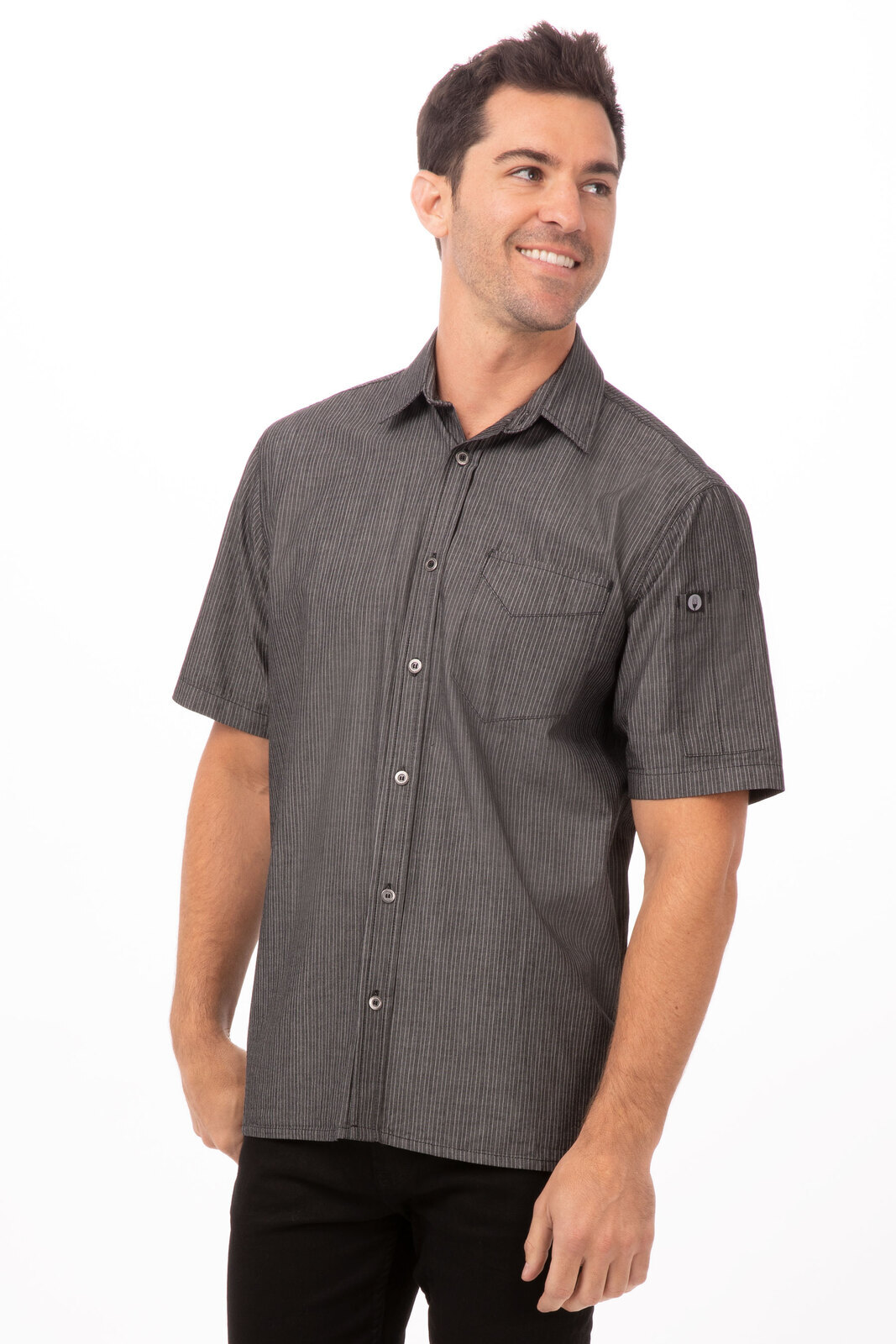 Chef Works SKS003-BLK-L Detroit Striped Short Sleeve Denim Shirt