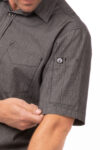 Chef Works SKS003-BLK-M Detroit Striped Short Sleeve Denim Shirt