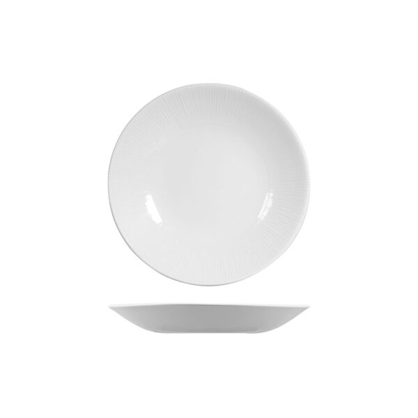 - Designed for a wide range of gourmet cuisine, the natural linear texture on white reflects the light beautifully, enhancing each dish.