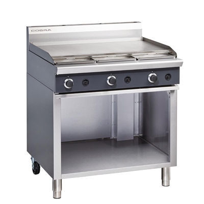 Incredibly versatile, the LPG gas Cobra C6C cooktop/griddle combines the dual benefits of two powerful open burners with a 300mm machine finished griddle plate, all mounted on a sturdy cabinet base.