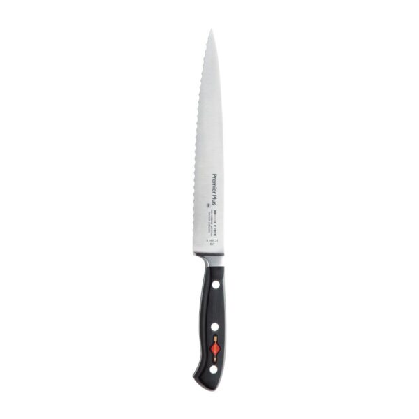 • This Dick Premier Plus serrated slicer knife has been carefully forged into a perfectly balanced and ergonomically shaped knife designed for optimum comfort.