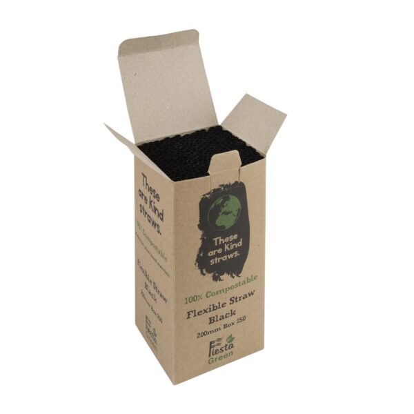 Give your restaurant, bar, pub or café a positive, eco-friendly image by using this pack of 250 x black Fiesta Green compostable CPLA flexible straws.