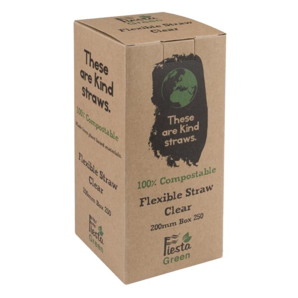 Ensure your business meets consumer demand for eco-friendly consumables by using this pack of 250 x clear Fiesta Green compostable CPLA flexible straws.