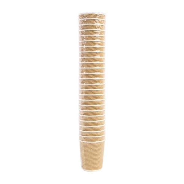 These Fiesta kraft cups feature a ripple wall design that traps a pocket of air between layers – this provides outstanding insulation that keeps drinks hotter for longer.