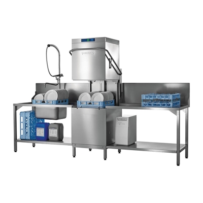 This pass through dishwasher has been designed to save you money through energy efficient performance as seen by its four sided hood that retains steam and heat, minimising any energy lost between cycles.