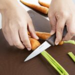 The knife has a strong, stainless steel blade that easily cuts through vegetables to save you time when preparing meals.