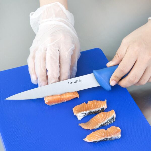 This specific fillet knife contains a blue handle which makes it suitable for cutting raw fish, whilst the longer blade makes this utensil ideal for filleting larger fish like salmon to ensure you get a deep and precise cut.