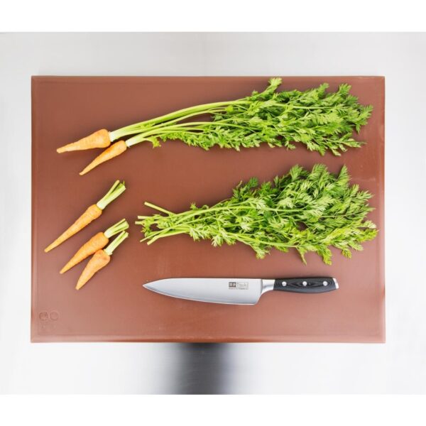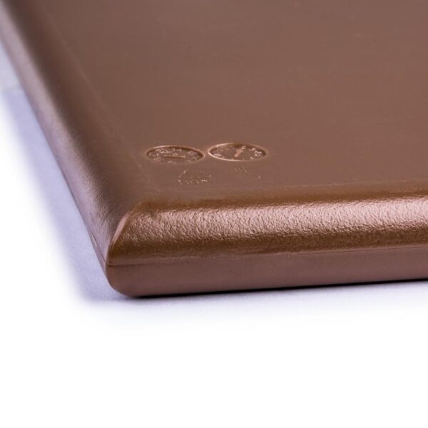 Made from high density polyethylene (HDPE), this extra large brown chopping board from Hygiplas is incredibly resistant to knife scratches and warping.
