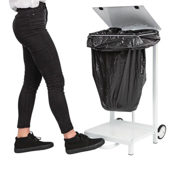 The simple pedal operation allows for hands-free use, perfect for clearing scraps from plates and helping to maintain hygiene and prevent cross-contamination in the kitchen.