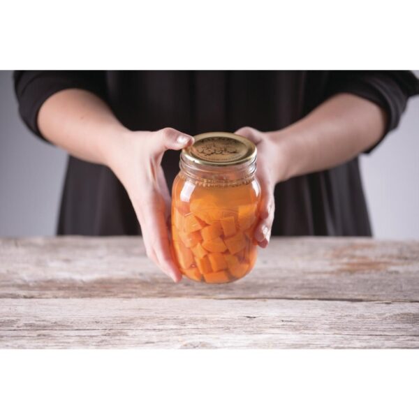The airtight screw top lid is a hardwearing, secure addition to this jars that keeps food fresher for longer, lowers your levels of waste, and ensures your menu is fully-stocked.