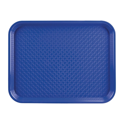 Extremely practical and durable, the 415(W) x 305(D)mm blue Kristallon medium polypropylene fast food tray is an essential for any school, cafeteria or fast food restaurant.