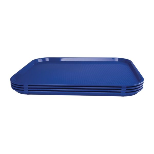 Extremely practical and durable, the 450(W) x 350(D)mm blue Kristallon large polypropylene fast food tray is an essential for any school, cafeteria or fast food restaurant.