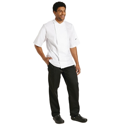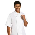 The Le Chef Premium Short Sleeve Executive Jacket comes in a crisp white finish, giving you a sharp look for greeting guests at front of house, as well as all the practicality you need for working in a busy kitchen.