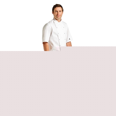 The 100% Egyptian cotton jacket has three-piece back panels and short sleeves, all specially designed to keep you cool when working in bustling, hot kitchens.