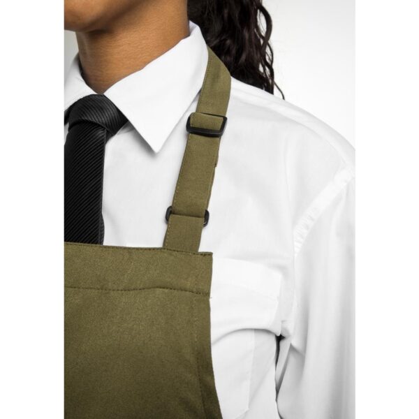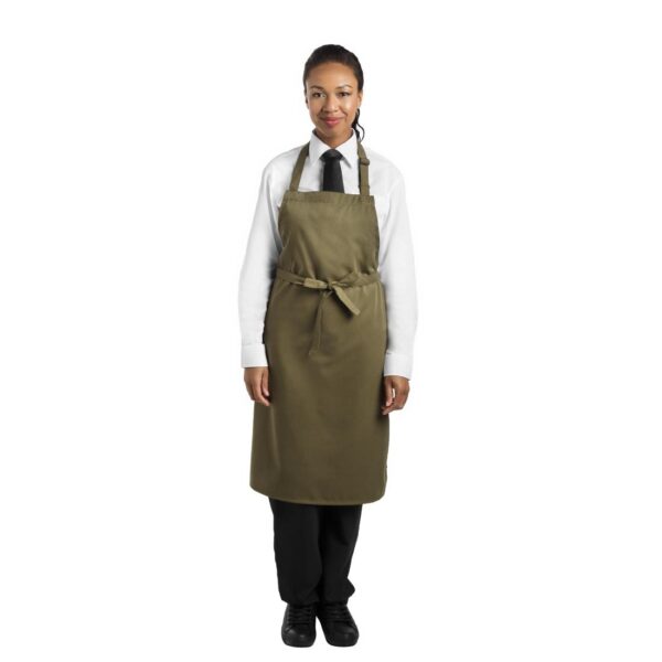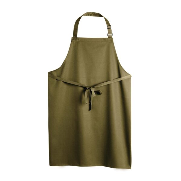 With its attractive sage green colouring and crease resistant design, this 100% polyester bib apron is easy to maintain and does not shed fibres, guaranteeing that your staff look fantastic and are protected from the inevitable mess of a busy kitchen.