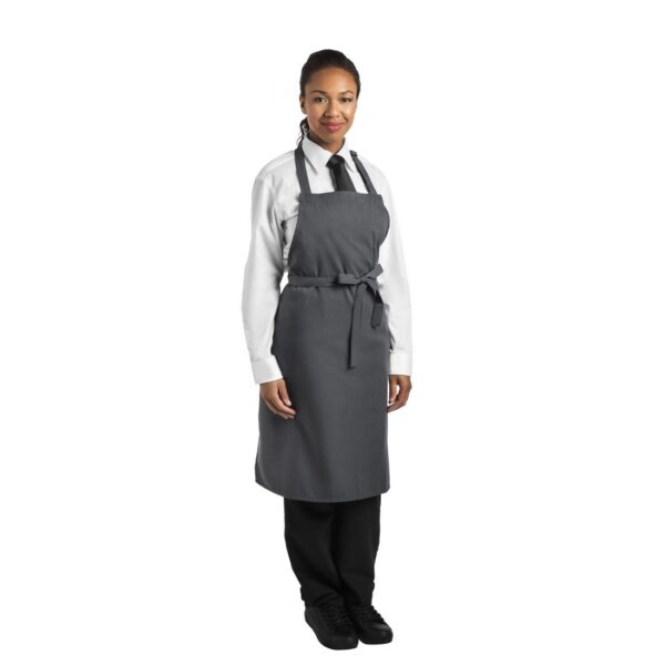 Offering a stylish and minimalist look for you and your staff, this storm grey bib apron is an attractive and durable addition to any catering establishment.