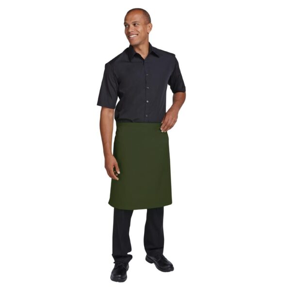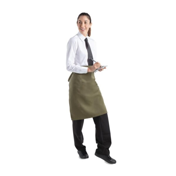 The sophisticated dark green of this olive-coloured waist apron is perfect for establishments that want their staff to look great and also feel comfortable thanks to the super soft feel.