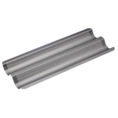 Perforated holes in the design allow the air to circulate freely, allowing moisture to escape and ensuring a consistent crust all around the baguette.