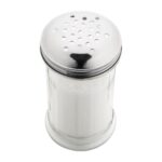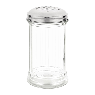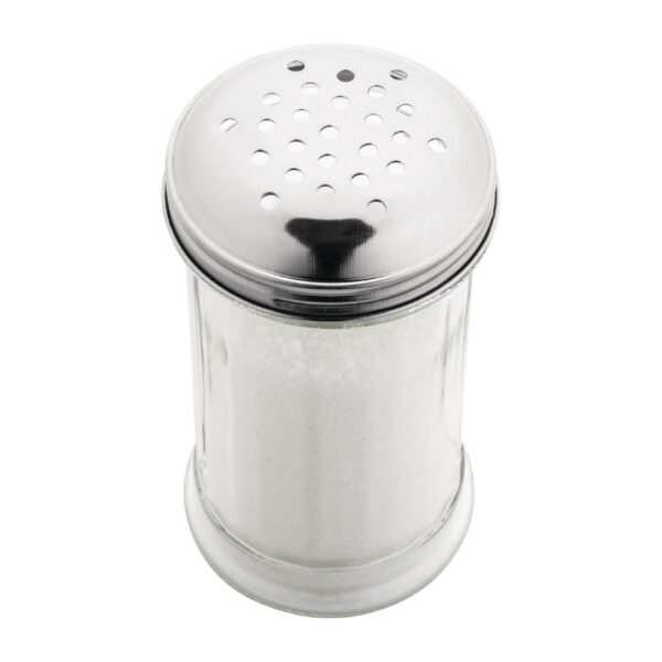 - A large glass sugar pourer with a stainless steel lid featuring 2.4mm multi holes.