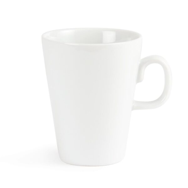 - Great value pure white porcelain 310ml latte mugs by Olympia, with the added advantage of stackability and strengthened rolled edges for chip resistance.