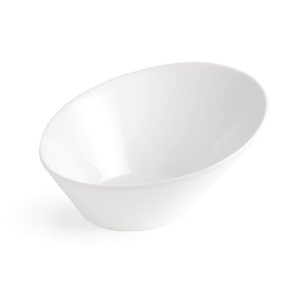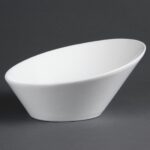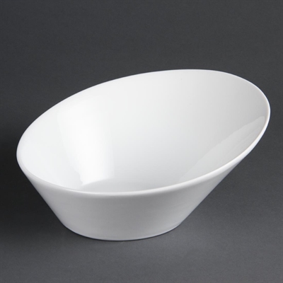 Our porcelain, oval shaped sloping bowls from Olympia are pure white in colour and a great value crockery choice.