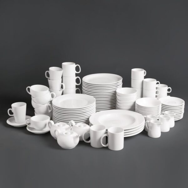 - Our great value pure white porcelain 284ml cappuccino cups by Olympia are fully vitrified for heat and shock resistance, the ideal crockery for hotels which want simplicity.