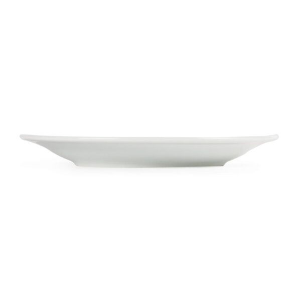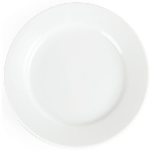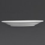 Our great value pure white porcelain wide rimmed 6 1/2 plates by Olympia are fully vitrified for heat and shock resistance, the ideal crockery for hotels which want simplicity.